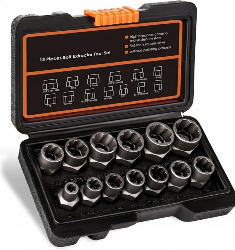 THINKWORK Bolt Extractor Tool Set, 13+1 Counts Impact & Nut Remover Stripped Lug Remover