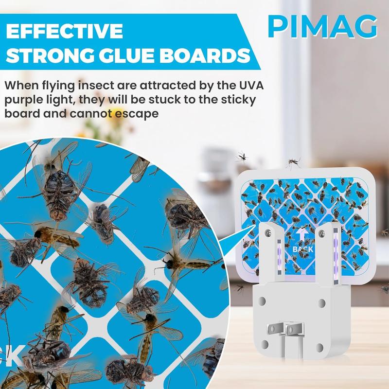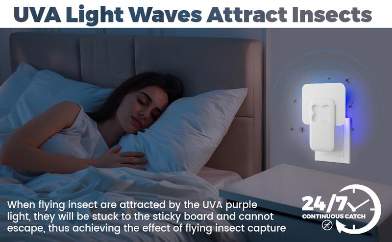 This fruit fly traps for indoors uses specially designed UV waves to attract mosquitoes, fruit flies, houseflies, moths, etc., and then sticks to them with a sticky card so they can't escape. At the same time, the blue-violet light from this indoor mosquito and fly trap can also be used as a night light.